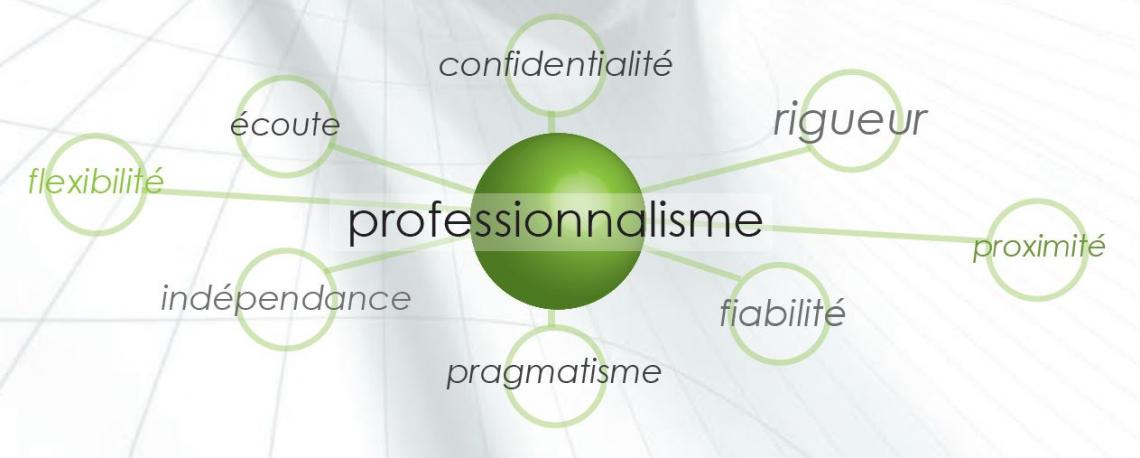 Expertise, proximité, flexibilité, disponibilité, efficacité, professionnalisme, confidentialité.